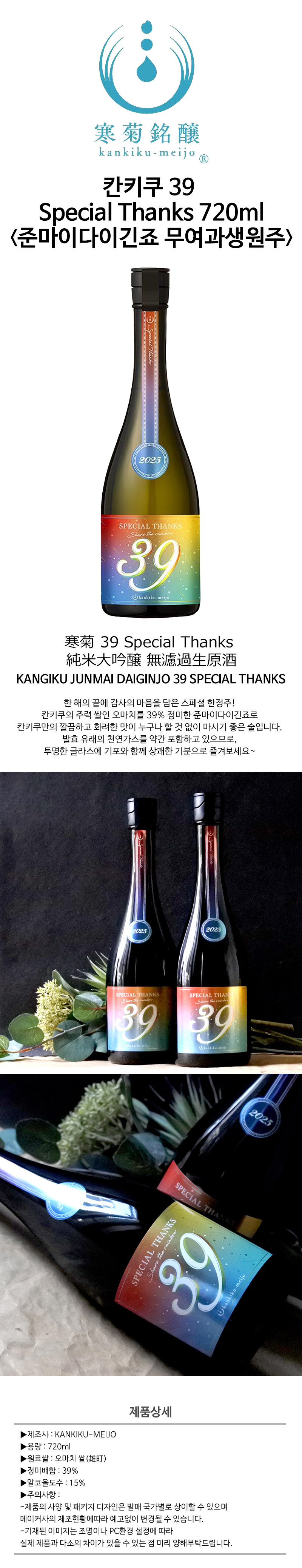 寒菊 39 Special Thanks 純米大吟醸 無濾過生原酒 720ml