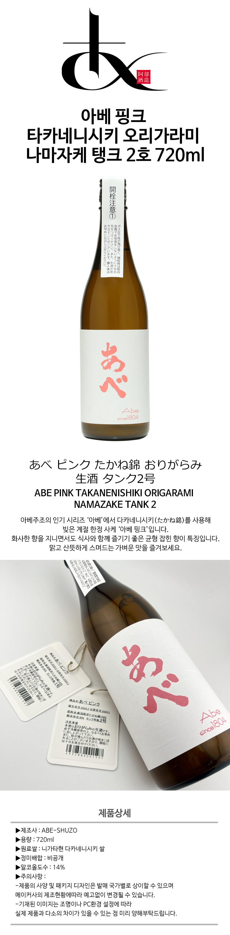 あべ ピンク たかね錦 おりがらみ生酒 タンク 2号 720ml